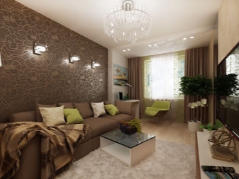 Зеленото, кафявото и различните нюанси на синьото са подходящи за създаване на атмосфера на релакс в дизайна на едностаен апартамент. Тези цветове вървят добре с бели и пастелни цветове (перфектна комбинация за подчертаване на зоната за спане или пространството за отдих). Светлите цветове имат положителен ефект върху психологическото състояние: жълто, бежово или прасковено. Тези цветове трябва да се предпочитат при декориране на дневни..
