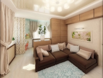 - Съчетаване на стая и лоджия. Пълното демонтиране на стената не е необходимо, достатъчно е да се разруши прозоречния блок, да се превърне останалата част от стената във функционален разделител на пространството.