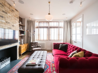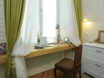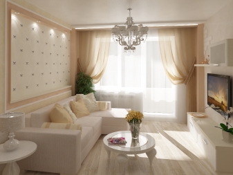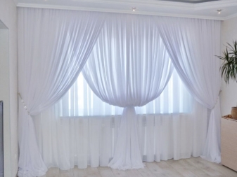 В стаи с големи прозорци можете да използвате завеси от лека палитра от ефирни тъкани. Дизайнерите съветват да изберете завеси, които лежат малко на пода. Обемните тежки завеси, както и многослойните конструкции в тесни пространства, изглеждат неуместни. Тъканта с вертикални райета добавя височина към пространството. Използването на студени нюанси визуално ще удължи стаята..