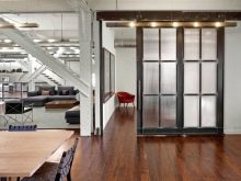 Стил таванско помещение дава по -широка свобода на действие. Вратата тук може да отсъства като такава, от нейните условни елементи може да остане един цокъл. Въпреки това, дори и в пълноценно студио, ще има интериорни врати (поне за баня). Подът може да обедини различни части на апартамента, използвайки един материал и цвят, или да раздели общото пространство на функционални зони посредством пластири, контрастиращи по цвят и текстура.