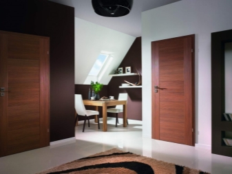 Вратите, макар и от същия материал, позволяват определен избор на опции. От една страна, вратата не трябва да се превръща в пречка за светлината, от друга страна, в условията на и без това голяма стая е възможно да се постави ясно видим ръб на стаята точно с помощта на тъмно крило на вратата , който ясно контрастира със стените и пода. Във всеки случай трябва да се съсредоточите върху пълния контраст или близкото сходство на нюансите на пода и вратата..