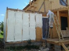 Полиуретановата пяна е направена на базата на полиестер с добавка на емулгатори, диизоцианат и вода. Такава изолация се нанася чрез пръскане. PPU прилепва добре към метални, бетонни, дървени и други повърхности. Той има отлична топлоизолация, не се страхува от влага и е в състояние да поддържа дебелината, обема и теглото на конструкцията. Методът на пръскане ви позволява да обработвате тавани и стени с всякаква сложност за кратко време. Но за да изолирате PPU, ще трябва да прибегнете до помощта на специалисти..