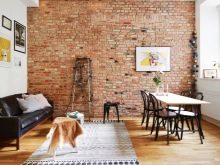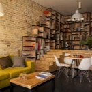 - Използване на различни довършителни материали с подчертаване на стени с различни цветове и композиции на облицовка (например, смес от тапети и ламинат, комбинация от тухлена зидария и необмазани стени, композиция под формата на панели, изложби, техника на пачуърк от отделни фрагменти от изправени пред);