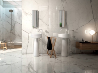 Дизайнерските решения позволяват комбинирането на материали помежду си. Това е удобно и ви позволява да направите печеливша и практична подова настилка с различни експлоатационни характеристики и различни нива на устойчивост на износване. Повечето материали са лесни за инсталиране. Те са огнеупорни, имат противоплъзгащо и антибактериално импрегниране, лесни за почистване с препарати, издържат на големи тежести и са предназначени за райони с голям трафик.