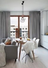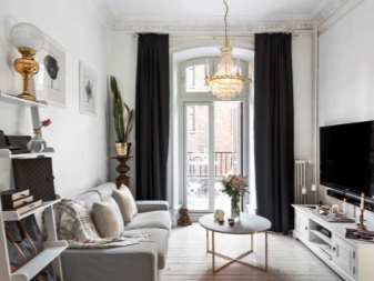 - Две стаи не са достатъчни за помпозен стил. Елиминирайте масивните мебели и тежките завеси от интериора. Елементите на дизайна трябва да бъдат компактни, изработени от леки материали, без да утежняват декора.