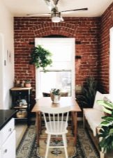 - Малка кухня може да се играе с италиански кухненски комплект, като поставите пълния комплект по тясна стена и частично две съседни. Ако в стаята няма достатъчно място, струва си да оборудвате трапезарията в друга стая. Можете също да използвате празен ъгъл на останалата стена..