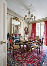 - в зависимост от стила и размера на стаите е допустимо използването на тежки материали, килими с дълги купчини, масивни мебели;