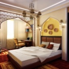 - Ако семейството е голямо, спалнята може да бъде разделена на две части: за родители и деца, ограничаване на пространството с гардероб. Ако няма деца, тогава в спалнята трябва да се разположи малка работна зона, където можете да прекарвате време, без да се разсейвате от домакинските задължения;