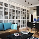 - можете да отделите отделна стая за кабинет, комбинирана с домашна библиотека;