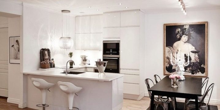 - ако е необходимо пространство, можете да увеличите пространството на кухнята, като го комбинирате със съседна стая, създавайки просторна трапезария.