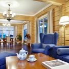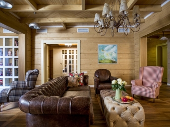 Руската печка се превръща в семантичен център на интериора, по желание на клиента вместо нея може да се монтира камина, но всички дизайнери смятат такава подмяна за дефектна. Препоръчва се внимателно да се обмислят други големи предмети в стаята, да се изоставят метал и пластмаса, от буйни подови настилки. Блоковете на прозорци и врати, ако има остър недостиг на средства, могат да бъдат направени от материали, които добре имитират външния вид на дървото. Необработените дървени повърхности ще се възприемат атрактивно, идеалното подово покритие е груба дъска с античен ефект.