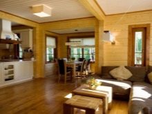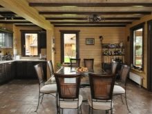 Вместо залепена дървена къща с типичен външен вид, можете да получите уютно семейно гнездо, наситено с топла атмосфера. Препоръчва се за тази цел преместването на изхода към терасата в кухнята (ако първоначално се е намирала в хола).