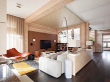 Модерен стил (модерен) се търси доста широко, характерните му черти са емоционална топлина и огромно пространство; осигуряването на такава комбинация е трудно, но все пак е възможно. Идеята за голям и закачлив дизайн може да бъде проследена във всичко: прозорците достигат големи размери, площта на стаите е голяма, те са наводнени със слънчева светлина. Препоръчва се едноцветно боядисване на стени; мебели се препоръчва да се купуват изпълнени в подобен стил.