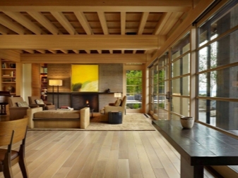 Таванните греди могат да станат не само декоративен елемент сами по себе си: удобно е да се скрие окабеляването в тях..
