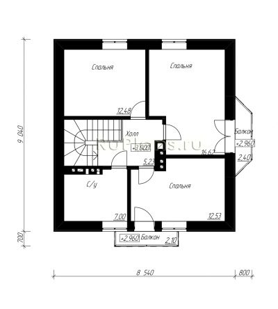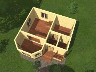 Къщи с изцяло правоъгълен еркер едва ли могат да бъдат намерени, дори и просто поради особеностите на този архитектурен елемент. Но има структури, които са доста сходни по форма, които са подходящи както за обикновен дом, така и за лятна резиденция. В един от тези проекти само една спалня с размер 8,64 кв. м. Има и всекидневна от 22.87 м2. Предлага се допълнително:
