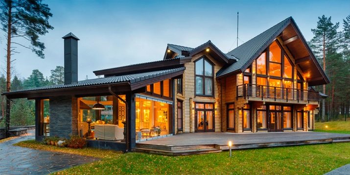 Дървена къща с панорамни прозорци е отлично решение, с които можете да подчертаете изтънчеността на вкуса на собственика на крайградска зона. Такива сгради се отличават със своята оригиналност, шик и престижен външен вид. Инсталирането на панорамни прозорци позволява голямо количество слънчева светлина да проникне в стаята. Това визуално увеличава пространството, прави възможно спестяване на електроенергия през деня, а също така създава хармония и комфорт в стаята..