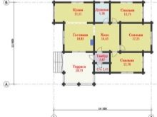 - Профилираният дървен материал е дървен материал, изработен от достатъчно здрави иглолистни видове.. След обработката на изходния материал се получава конфигурация, която от една страна има изпъкнала форма, а от друга – плоска повърхност. В допълнение, материалът е оборудван с удобна система за жлебове, която ускорява процеса на инсталиране на тази конструкция. Най -добрият проект – къщата “Агата” 11.9х14.1 с тераса.
