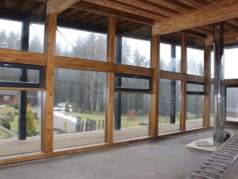 - инсталирането на панорамни прозорци се затруднява от необходимостта от свиване на къща, изработена от дървен материал.
