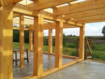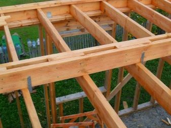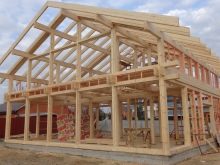 - След като инсталирате стелажите, преминете към горната лента. Това е свързване на стелажите отгоре с помощта на хоризонтална лента. За укрепване на закрепването на конструкцията, която все още не е придобила максимална твърдост, се използват допълнителни диагонални “триъгълници”. След завършване на обвързването се монтират таванни греди – те най -накрая ще укрепят цялата конструкция. Този етап се извършва с помощта на изрязване, закрепване с ъгли или скоби. Разрезът е връзка с шипове и канали. Шиповете навлизат в лентата на лентата на 40% от нейната дебелина.