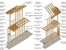Рамката се състои от долна и горна лента, основни елементи и колони, както и хоризонтални и вертикални вложки, които обозначават отворите на вратите и прозорците. Основната схема на сглобяване е следната.