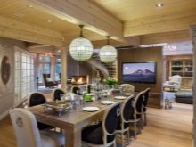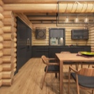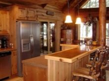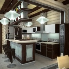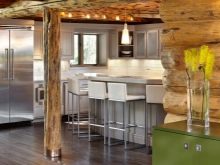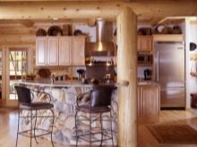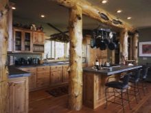 - Интериорът на кухнята в дървени къщи изглежда много уютен и приветлив. Хората обичат да бъдат в такава среда, защото винаги им е топло и удобно. Тук можете да се отпуснете и да избягате от ежедневните проблеми..