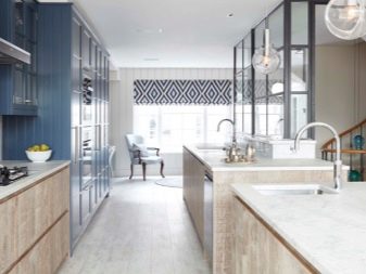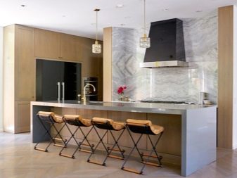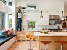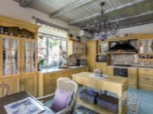 - Модерни. В дървена къща кухнята може да бъде декорирана в този интересен стил. Модерният се характеризира с нестандартни линии декор и мебели. Препоръчва се интериорната декорация да се повери в този дух на опитни дизайнери..