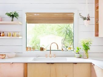 Най -добрият начин да изберете правилните мебели е да вземете предвид състава на прозорците във вашата кухня. Ако остъкляването е от дърво, тогава мебелните конструкции трябва да му съответстват. Същото важи и за случаите, когато пластмасовите прозорци са ламинирани под дърво..