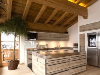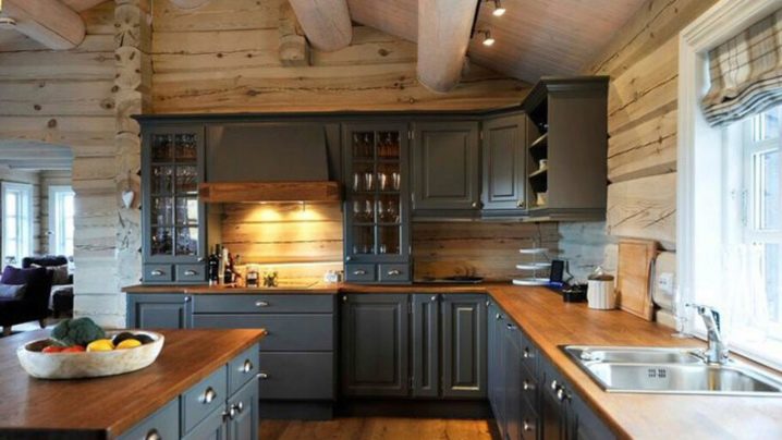 Атрактивна и практична кухня в дървена къща трябва да бъде оборудвана със задължителните грижи от естествени материали. Само тогава обзавеждането ще изглежда естетически приятно и ще остане такова в продължение на много години..