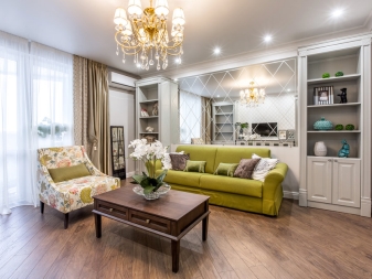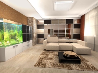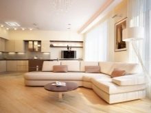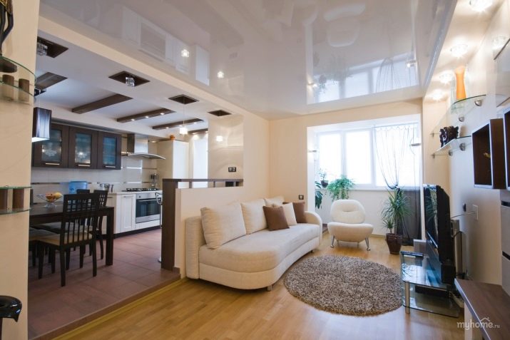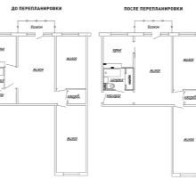 Частично комбиниране на помещения също се използва, например балкон със спалня или кухня с хол. Подът в такъв апартамент се сменя с плочки и премахване на старата дървена настилка и замазки..