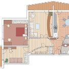 Всички стаи са изолирани една от друга. При влизане в апартамента веднага се озоваваме в дълъг и прав коридор. Вляво от него има три спални. Първите две имат балкон. Третата, по -просторна спалня има собствена съблекалня.