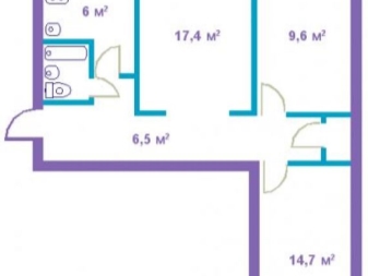 Характеристиките на такъв апартамент са складови помещения и тесни коридори. Стандартната площ е 64 м2. Но балконите и лоджиите в тях обикновено се правят големи.