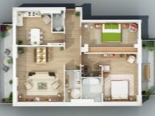 Една от характеристиките на тристаен апартамент е наличието на проходимо пространство. В съвременните къщи оформлението на 3-стайното жилище е станало много удобно поради високите тавани.