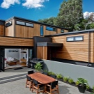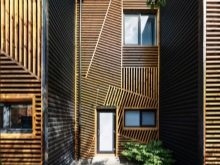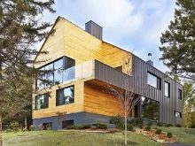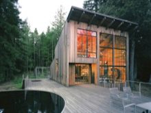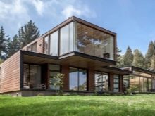Вторият проект предвижда стъклени панели не само по фасадата – стъклен куб изглежда расте от страничната стена, увеличавайки панорамната гледка с 30%. Що се отнася до третата къща, нейните идеални пропорции и тандемът от стъкло и дърво правят сградата малко футуристична в околностите. Създава се двойно впечатление за чуждост и същевременно естественост на жилищна сграда в естествен ъгъл.