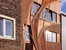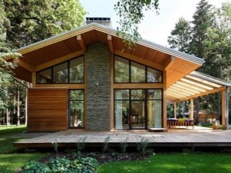 Илюстративни примери са няколко комбинирани проекта, в един от които дървото е органично комбинирано със стъклени панели.. В същото време масивността и „бруталността“ на „дивия“ каменен завършек прави основната част от конструкцията лека и ефирна..
