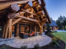 Къщите, изработени от дебели трупи, изглеждат оригинални, всяка от тях е уникална по свой начин, всяко жилище от този тип има специален чар и привлекателност. Конструкции, изработени от дебели трупи (диаметър 32-35 см и повече) и дори заобиколени от иглолистни дървета, наподобяват обителта на приказни герои. Най -подходящите за организъм скандинавски и норвежки стилове са много популярни в дизайна. Като строителен материал се използва кело (дърво, умряло по естествен път) или специално добито дърво. При издигане на дървена къща се използва технологията “канадска сеч”.