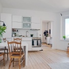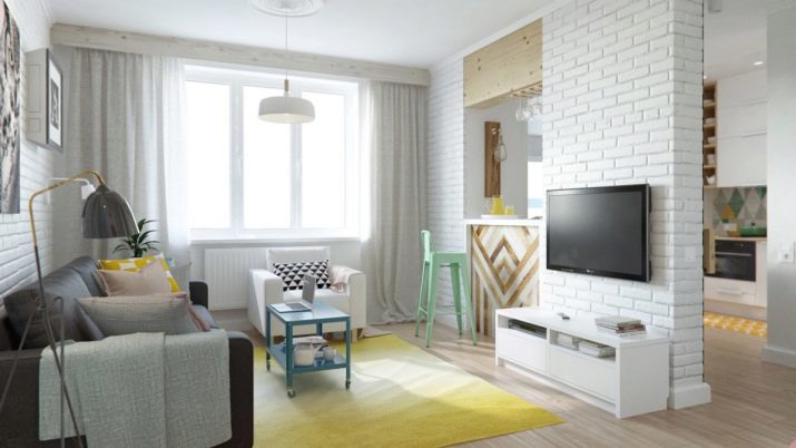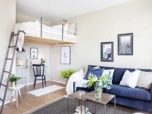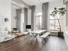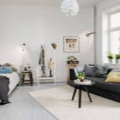 Едностайните апартаменти са проектирани и в скандинавски стил. Той е подходящ за малки помещения и е в състояние да размие границите и да внесе пространство в стаята. Отличава се със светло покритие, но с малки ярки акценти..