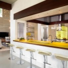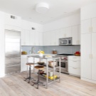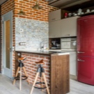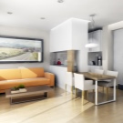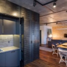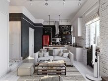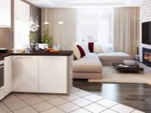 Друг вариант е преместете кухнята в друга стая и я комбинирайте с хола. За да направите това, можете да използвате бар брояча, да прикрепите към него диван на гърба. Тази опция изглежда необичайна. В същото време можете да комбинирате кухнята и хола, като премахнете преградата между тези две стаи и направите пълноправен студиен апартамент.