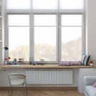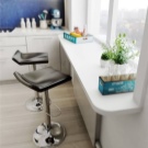 Вместо плот за маса можете да използвате и перваза на прозореца. За да направите това, по -добре е да го подрежете с най -издръжливия материал. Перваза на прозореца може да замени и работната зона на домакинята. Това е функционален и удобен елемент. Но тогава е по -добре да не окачвате завеси на прозореца..
