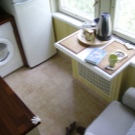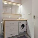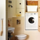 По правило такива апартаменти имат малки бани. Ето защо няма къде да инсталирате пералня. Но дизайнерите съветват да го инсталирате в ниша, като направите специална вдлъбнатина под нея. Можете да поставите не само пералня там, но и да направите малък шкаф за бельо там..