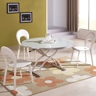 По -добре е да монтирате кръгли маси за хранене и трапезария в хола и трапезарията. По този начин можете да настаните повече хора зад тях при среща с гости или за семейна вечеря. Маса за кафе дори може да замени маса за хранене, ако не приемате гости толкова често. След това трябва да инсталирате малки столове или тахти близо до него. Но по -добре е плотът да е доста голям.