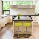 Можете също така да отделите кухнята от други функционални зони. Разделянето може да се извърши и с мебели. Така че можете да върнете дивана обратно в кухнята. Така той ще отдели хола от работната зона на домакинята. За такова зониране често се използват шкафове – стелажи или колони с отворени рафтове. Те включват инсталиране на необходимите елементи и неща надолу, докато горната част остава практически свободна, тя е изпълнена само с декоративни елементи, които отвличат вниманието от някоя от тези отделни зони..