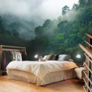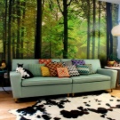 Стената може да представлява цяла триизмерна алея или друг пейзаж. Такъв акцент ще направи стаята по -просторна и ще привлече вниманието към тази стена..