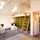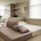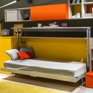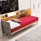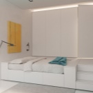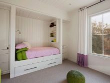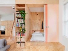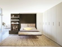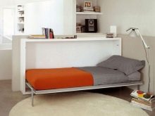 Интересен и стилен вариант е сгъваемо легло. Можете да го скриете в килера и да го разгънете само когато се подготвяте за лягане. В този случай можете да поставите диван в стаята, но другото място за спане постоянно ще се сгъва, за да не пречи през деня.
