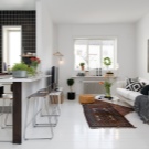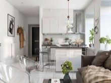При подреждането на едностаен апартамент се използва оформление от скандинавски тип. Тя включва разпределяне на малък брой функционални зони и инсталиране само на най -необходимите елементи. Освен това всички повърхности: тавани, подове, стени, са завършени с материали, по -малко забележими по цвят и дизайн, акцентите се поставят само с помощта на някои мебелни елементи. Например, можете да направите цветен плот или столове, а всичко останало трябва да е по -спокойно и по -хармонично..