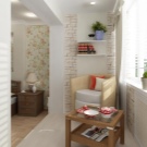Когато планирате, обърнете внимание не само на жилищните зони на апартамента, но и на нежилищните. Можете да премахнете или стесните преградата, водеща към балкона, и да използвате тази стая като продължение на стаята. Освен това там може да се организира пълноценна зона за отдих. Стената се премахва, запълвайки стаята с простор. Но такова преустройство трябва да бъде договорено..