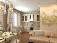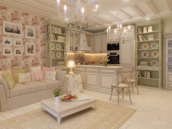Едностайните апартаменти често са декорирани в стил Прованс. Това е особено подходящо, ако става въпрос за женска територия или апартамент на семейство с малко дете. Този стил предлага нежност и женственост с нотка на романтика. При подреждането на апартамент в този стил се използват пастелни цветове и най -меките и светли тонове. За декорация се използват естествено дърво, камък или плочки. В дневната можете да поставите декоративна или истинска камина от ъглов тип. Той ще внесе топлина и уют в тази стая. Мебелите трябва да са по -леки и по -леки.