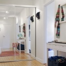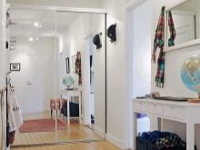 Можете също да инсталирате обикновено огледало на цяла стена. Това е чудесна алтернатива за инсталиране на огледален шкаф. Като окачите няколко огледала едно срещу друго в коридора, можете да създадете огледален коридор, който да изпълни едностаен апартамент с простор. Входните врати също могат да бъдат огледални. Огледалата трябва да бъдат монтирани от вътрешната страна на крилото на вратата. Дизайнерите уверяват, че благодарение на отражението правят входната зона по -просторна..