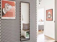 Модерните едностайни апартаменти могат да имат супер модерен интериор и уютен дизайн, ако приложите някои трикове, когато ги подреждате. Така че, в коридора или в коридора, можете да покриете стените с ярки тапети с петна. По този начин можете да отвлечете вниманието от шкафове, килери, обувки и гледката към стаята. Дизайнерите уверяват, че ритмичните и динамични модели тапети и графики с визуален обем са идеални за тази зона. Така че можете да подредите всички стаи за преминаване, но не и стаята, тъй като очите могат да се уморят от това..