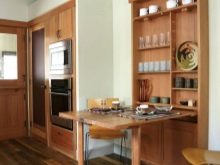 Ако сте собственик на малък едностаен апартамент, би било най-разумно да използвате компактни и функционални мебели, които могат да бъдат трансформирани по всеки удобен начин. За вашата кухня можете да закупите стенна маса, която се сгъва и разгъва, ако е необходимо..