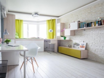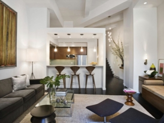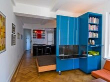 Също често срещан и модерен начин да направите апартамента по -голям. Студията са много популярни сред творческите хора, тъй като са практични и удобни. За да превърнете апартамента си в шикозно студио, трябва да премахнете стената, която разделя кухнята от спалнята (хола). Тази зона вече има кухня + трапезария + хол. Подиумът ще помогне визуално да отдели кухнята от трапезарията. Можете също да поставите дялове.